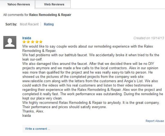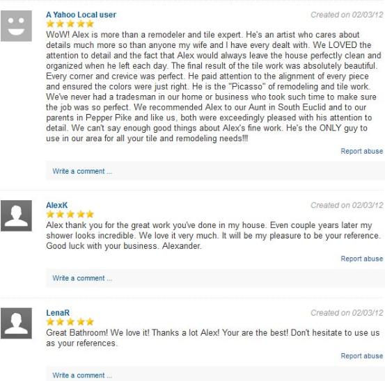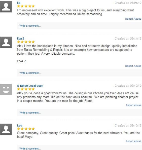 Reviews on Yahoo: