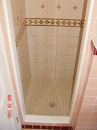 | Complete Shower remodeling w/light, faucet, drain and liner replacement and double mud floor installation. |